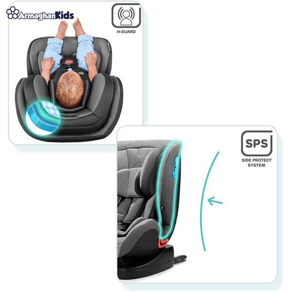 ارتفاع این محصول به گونهای قرار دارد که به خوبی از وضعیت سر و گردن کودک محافظت میکند، البته متناسب با سن فرزند شما قابل تنظیم میباشد.ضمن اینکه مجهز به بیس بوده و ثابت بر روی صندلی قرار داده میشود، از این رو شما به سادگی میتوانید در هر جهتی صندلی را تغییر جهت دهید.