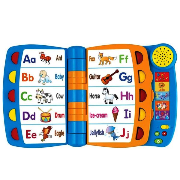 این کتاب زیبا دارای ملودی های سرگرم کننده و 4 صدای موسیقی است که با ورق زدن کتاب آن ها پخش می شوند. در صفحات این محصول جذاب حروف، اشیا، اعداد، تشخیص کلمات و بازی حافظه وجود دارد که کودک می تواند در کنار سرگرمی آموزش های از این قبیل را نیز دریافت کند. همچنین از 26 افکت صوتی و رنگ های بسیار زیادی ساخته شده که می تواند توجه کودک را به خود جلب نموده و از بازی کردن با آن لذت برد.